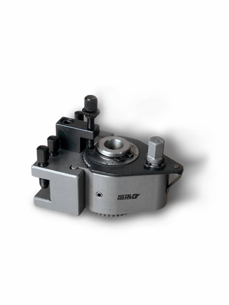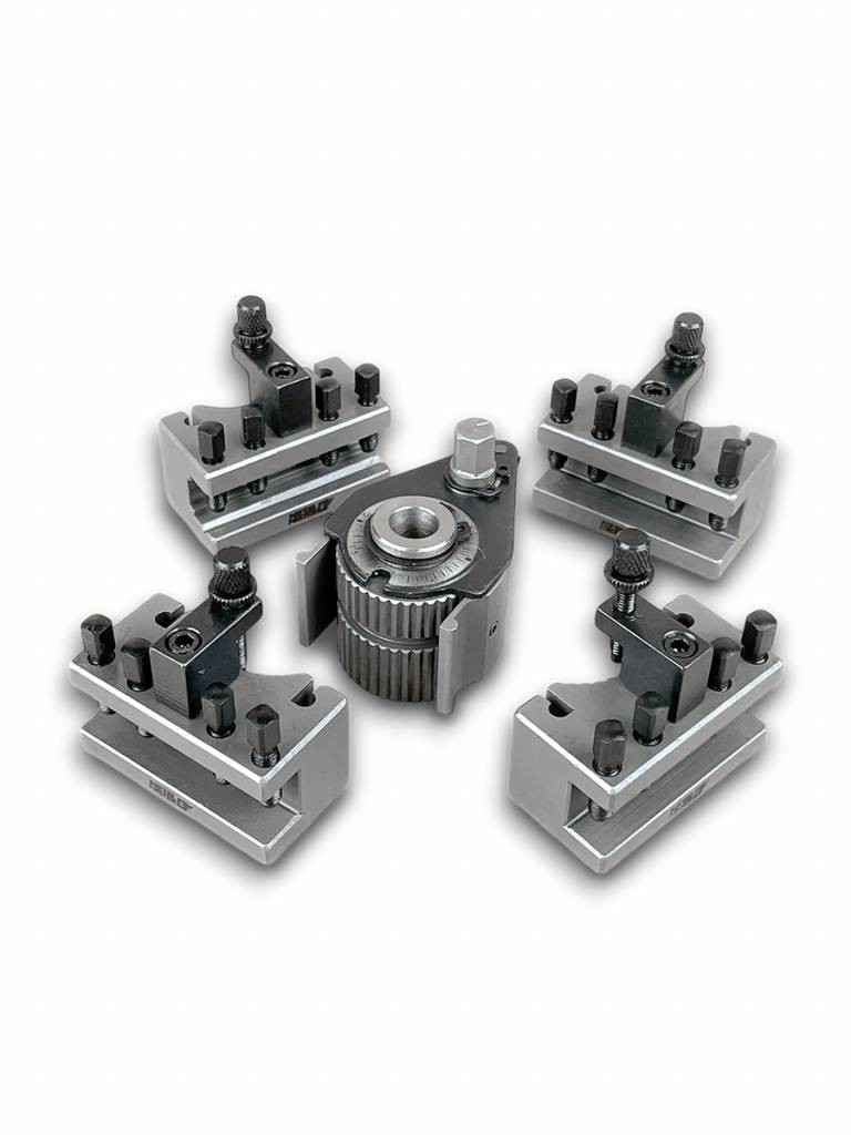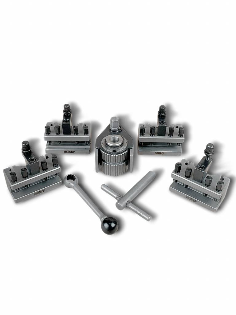 Система обеспечивает точность повторения 0,01 мм при 40 возможных угловых положениях держателя инструмента. Резцедержатель отшлифован с высокой точностью. Блокировка и ослабление держателя инструмента выполняется простым эксцентриковым зажимом. Регулировка высоты резца контролируется винтом с накатанной головкой, без необходимости использования уплотнительных пластин или прокладок.