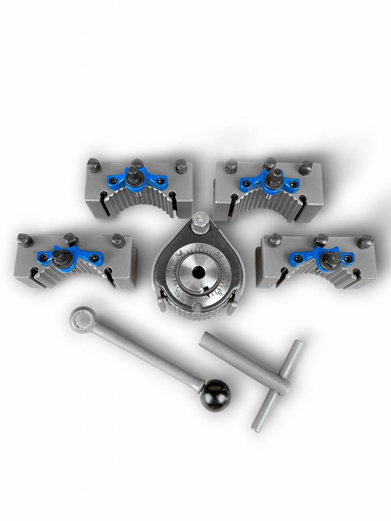Система обеспечивает точность повторения 0,01 мм при 40 возможных угловых положениях держателя инструмента. Резцедержатель отшлифован с высокой точностью. Блокировка и ослабление держателя инструмента выполняется простым эксцентриковым зажимом. Регулировка высоты резца контролируется винтом с накатанной головкой, без необходимости использования уплотнительных пластин или прокладок.