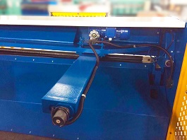 | Двигатель перемещения заднего упора с рукояткой тонкой доводки | Суппорт с линейкой и обратным упором листа |