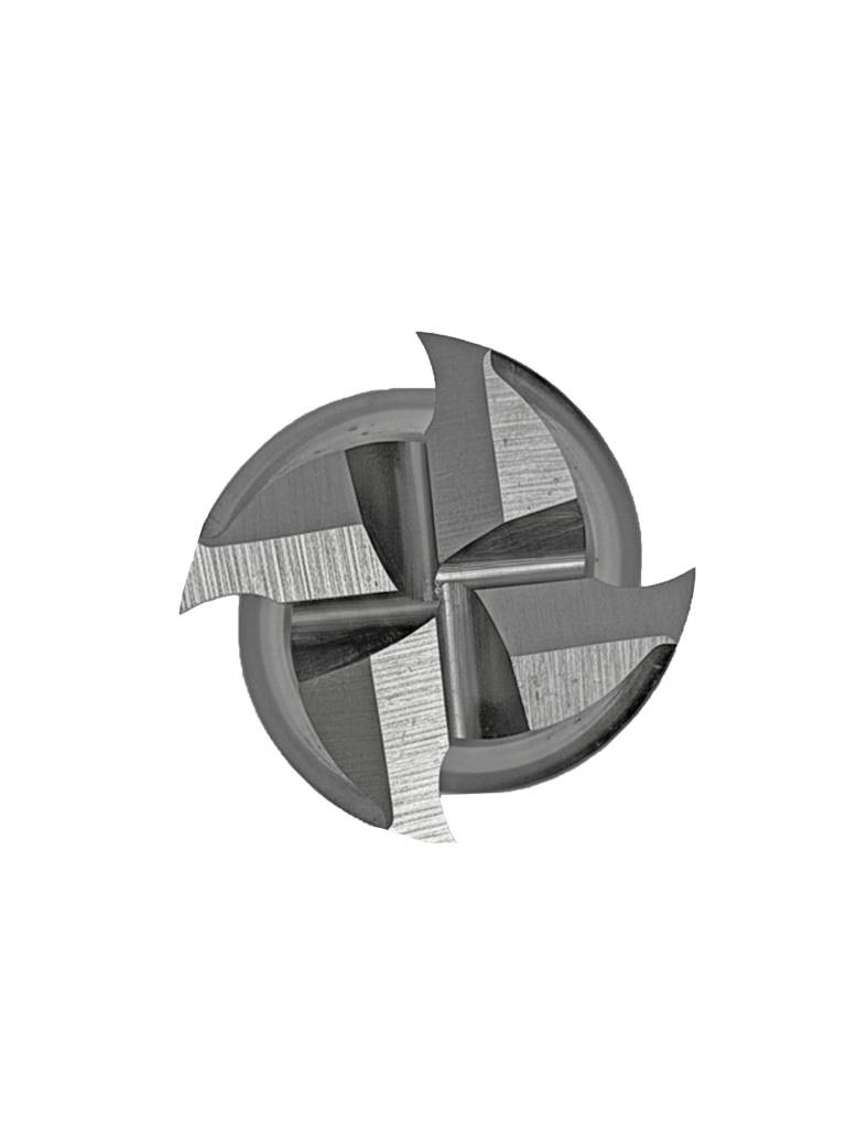 - Правосторонняя спираль с углом 30° на фрезах с четырьмя кромками обеспечивает качественный отвод стружки