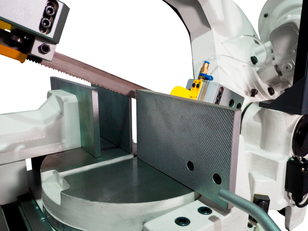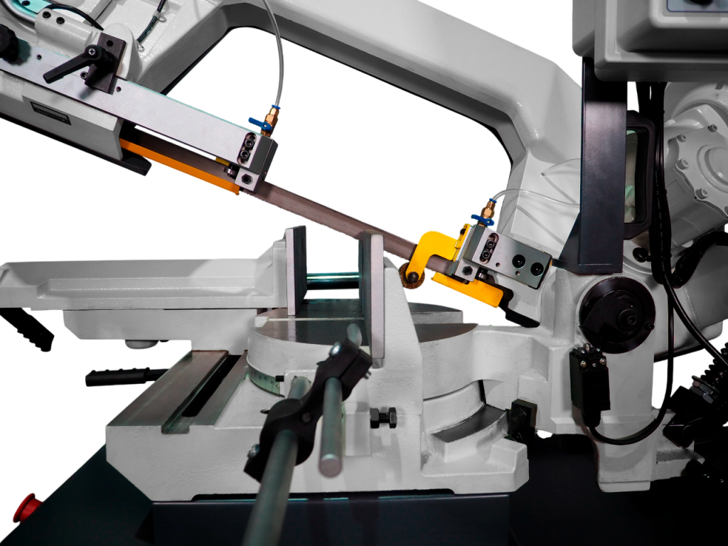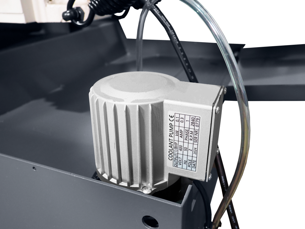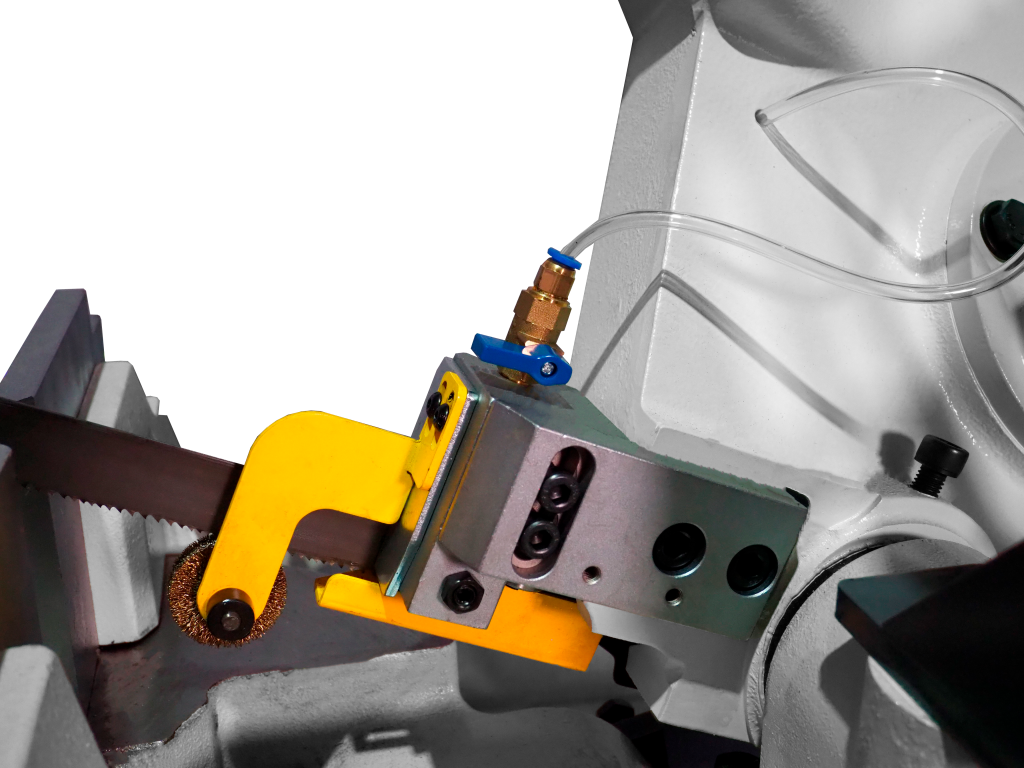 Станок BSG-255 оснащен системой подачи СОЖ с мощной помпой, удобно установленной на тумбе станка. Специальная корд-щетка для съема стружки улучшает условия работы полотна и продляет срок его службы.