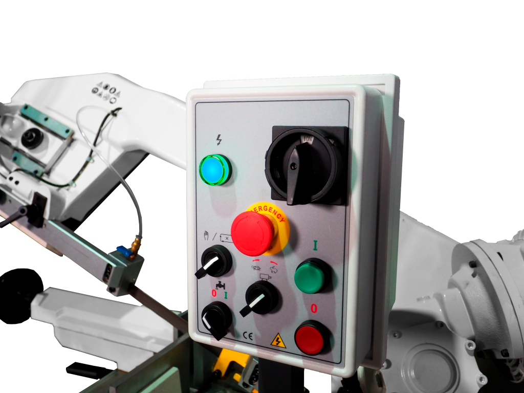 Особенностью ленточнопильного станка Metal Master BSG-255 является то, что органы управления вынесены на отдельную панель.