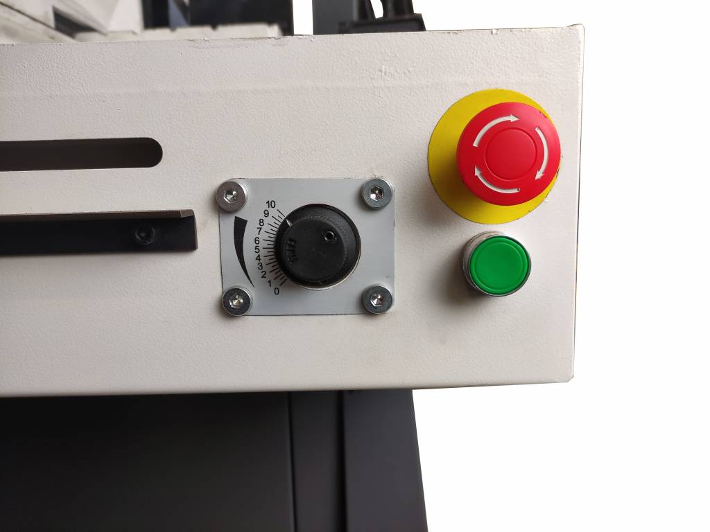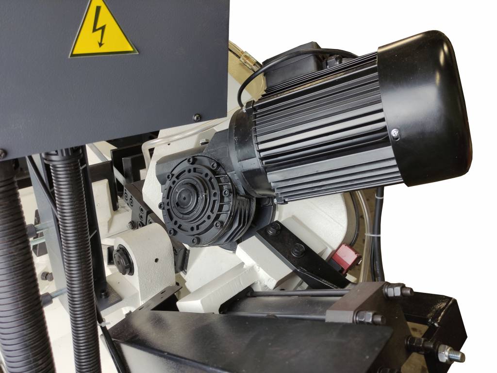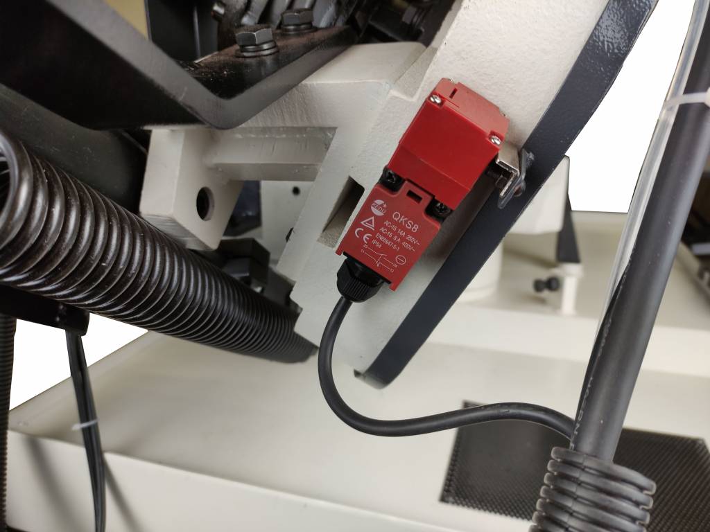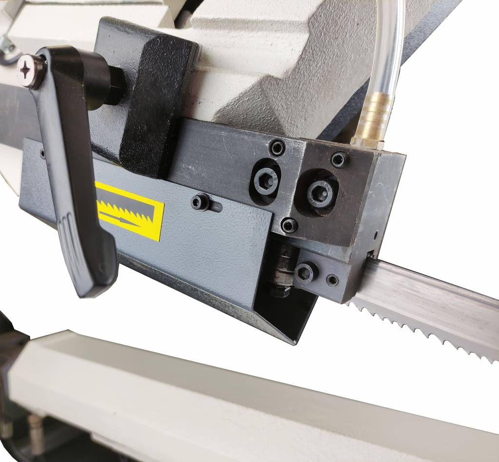 Натяжение пильного полотна производится маховиком с тензометром. Точный контроль натяжения полотна. Стабильный рез. Срок службы полотна возрастает.
