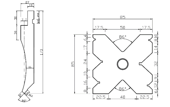 - Инструмент: Матрица 4-сторонняя/пуансон;