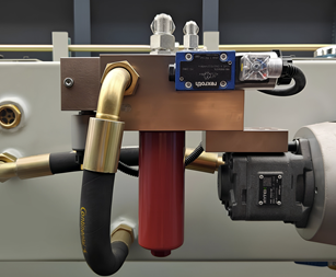 Станок оснащен мощным и надежным двигателем от европейского бренда Siemens мощностью 11 кВт. | Гидравлическая система от немецкого бренда Rexroth расположена на верхней части станка. Также на прессах серии PressMaster PRO 4+1 установлен гидравлический насос бренда SUNNY, который обеспечивает надежную работу гидравлической системы за счет высоких эксплуатационных показателей. |