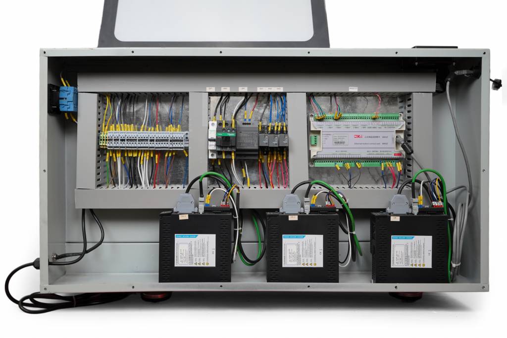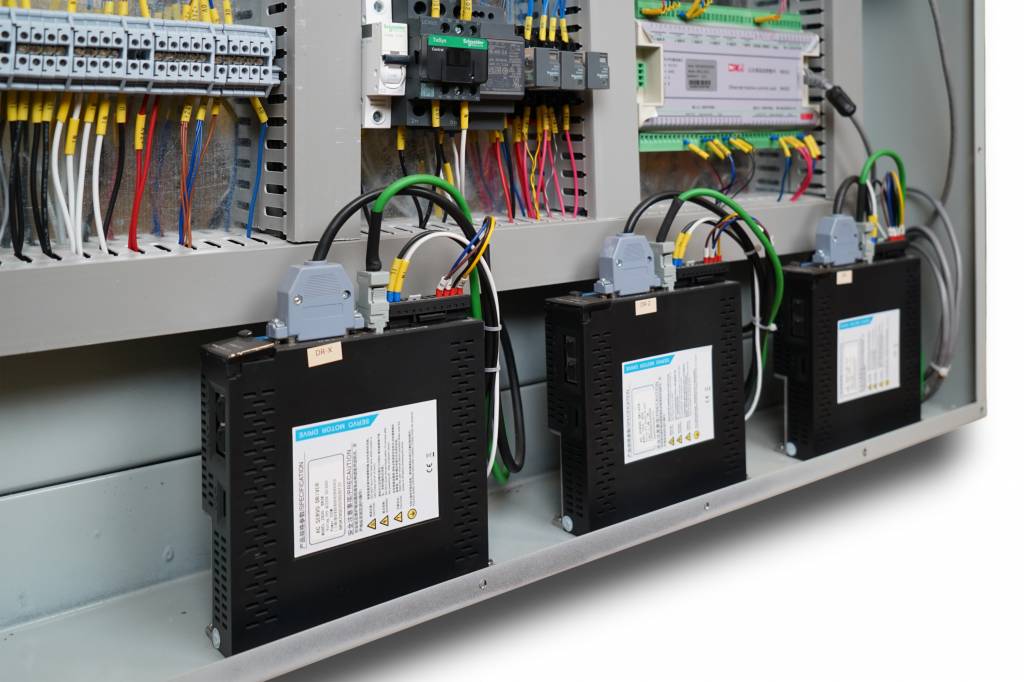 Сзади станка расположен электрошкаф, в котором находятся сервоприводы и электрокомпоненты бренда Schneider Electric.