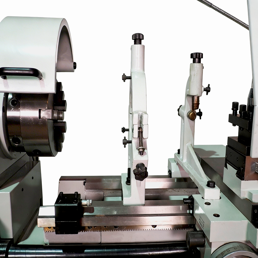 Станок «в базе» комплектуется подвижным и неподвижным люнетами. Диапазон подвижного люнета 6~100 мм. Диапазон неподвижного люнета 6~125 мм.