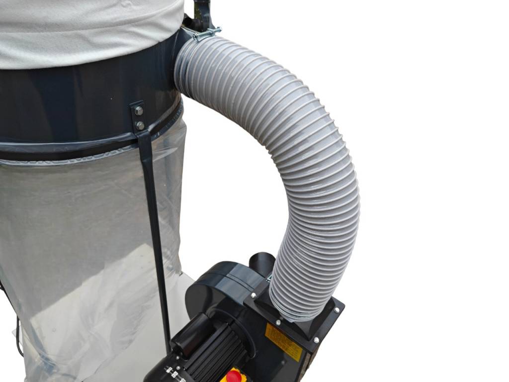 Система пылеулавливания специально разработана для сбора опилок и древесной стружки у источника их образования. Мелкая пыль отфильтровывается верхним мешком, а тяжелые частицы оседают в нижнем мешке, откуда их легко удалить.