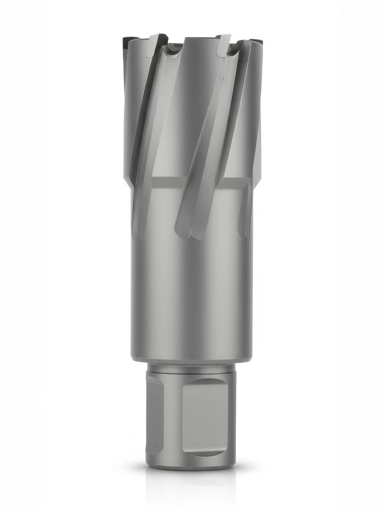 За счет работы сверла периметром режущей части обеспечивается высокая скорость резания и сокращается время обработки материала. Хвостовик Weldon 19 гарантирует точное позиционирование и минимальное радиальное биение инструмента с передачей высокого крутящего момента.