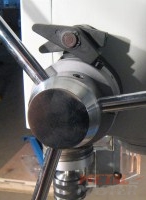 Закаленный шлифованный шпиндель на подшипниках высокой точности укрыт щитком. Крутящий момент передается посредством редуктора. Скорости переключаются ручками на головке сверления. Панель управления оснащена специальной таблицей соответствия положения ручки и скорости.