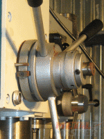 На станке предусмотрено выталкивание патрона. Предохранительная скоба отводится в сторону, а шпиндель поднимается вверх до упора.