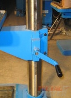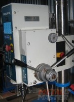 Вращение шпинделя может менять направление при переключении с панели управления. Там же находится регулируемый упор глубины сверления. Головка перемещается по колонне зубчатой передачей вручную.