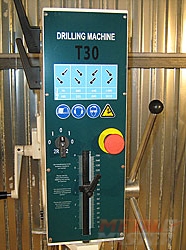 Сверлильный станок вертикального типа имеет ход шпинделя 150 мм и максимальный диаметр сверления 30 мм. Станок имеет вид массивной конструкции с головкой для сверления и панелью управления, колонной с толстыми стенками большого диаметра, столом с крепежными пазами в форме Т, литым основанием и зубчатым механизмом для перемещения стола и сверлильной головки.