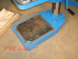 Сверлильный станок вертикального типа имеет ход шпинделя 150 мм и максимальный диаметр сверления 32 мм. Станок состоит из массивной конструкции с головкой для сверления и панелью управления, колонной с толстыми стенками большого диаметра, столом с крепежными пазами в форме Т, литым основанием и зубчатым механизмом для перемещения стола и сверлильной головки.
