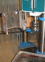 На станке предусмотрена система выталкивание патрона. Для этого скоба отводится в сторону, а шпиндель поднимается вверх до упора.