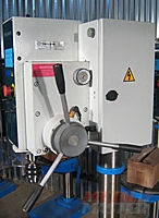 На станке предусмотрена возможность автоматической подачи шпинделя к обрабатываемой детали. Подача производится при вращении ручки. Сбоку от головки находится регулятор для установки скорости шпинделя и его подачи. Автоматическая подача подключается с панели управления.