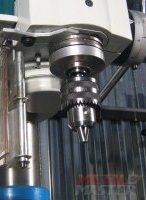 Закаленный шлифованный шпиндель находится на подшипниках высокой точности и накрыт щитком для защиты. Крутящий момент передается на шпиндель через редуктор на шестеренках. Скорости переключаются ручками сбоку на головке. Панель управления имеет таблицу соответствия положения ручки и скорости. Вращение шпинделя меняется при переключении ручкой на панели управления. Там же находится механический регулируемый упор для фиксации глубины сверления. Головка перемещается по колонне опоры при помощи зубчатой передачи вручную.