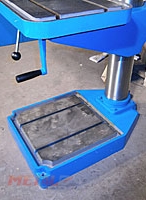 Сверлильный станок вертикального типа имеет ход шпинделя 150 мм и максимальный диаметр сверления 40 мм. Станок применяется для сверления глухих и сквозных конических и цилиндрических отверстий, для снятия фасок, зенковки, развертывания, нарезания резьбы, рассверливания и расточки. Станок имеет вид массивной конструкции с головкой для сверления и панелью управления, колонной большого диаметра с толстыми стенками, столом с крепежными пазами в форме Т, литым основанием и зубчатым механизмом для перемещения стола и сверлильной головки. После того, как выставленная глубина достигнута, пиноль автоматически возвращается в первоначальное положение.